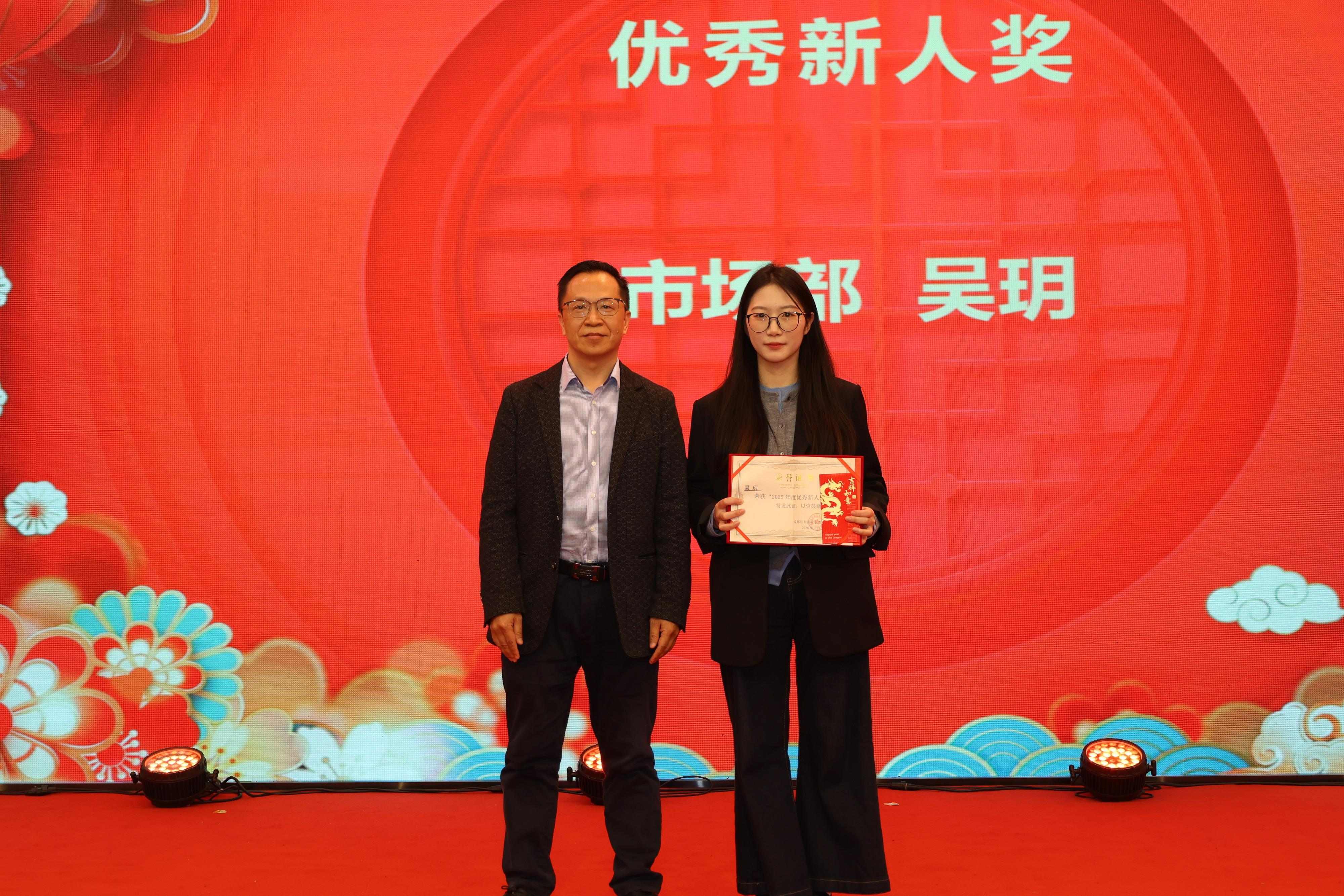 會(huì)議對(duì)2025年度表現(xiàn)突出的先進(jìn)集體和個(gè)人進(jìn)行表彰。經(jīng)過評(píng)選,一批“優(yōu)秀新人”、“優(yōu)秀內(nèi)勤”、“優(yōu)秀銷售”“先進(jìn)集體”和“優(yōu)秀管理者”脫穎而出。他們生動(dòng)詮釋了“敬業(yè)、奉獻(xiàn)、協(xié)作、創(chuàng)新”的企業(yè)精神,副總經(jīng)理侯小剛、股東馮玉成、魏敬明、周年文為獲獎(jiǎng)?wù)哳C發(fā)證書和獎(jiǎng)金,現(xiàn)場(chǎng)掌聲雷動(dòng),氣氛熱烈,榮譽(yù)的背后,是對(duì)新人快速成長(zhǎng)的肯定、對(duì)內(nèi)勤默默堅(jiān)守的致敬、對(duì)銷售奮勇開拓的嘉獎(jiǎng)。他們以卓越的協(xié)作力與執(zhí)行力交出了亮眼答卷,為全體員工樹立了“標(biāo)桿在前、奮進(jìn)有我”的榜樣。每一次掌聲都承載著認(rèn)可,每一份榮譽(yù)都凝聚著擔(dān)當(dāng),更激發(fā)了大家創(chuàng)先爭(zhēng)優(yōu)的昂揚(yáng)斗志。